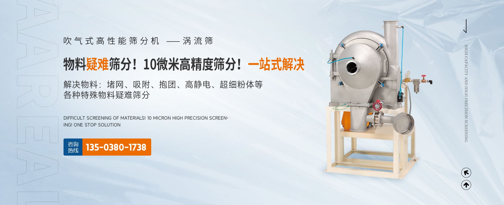 阿 瑞 爾(AAREAL)? 是從事篩分·過濾設備設計和制造的高新技術企業,擁有先進的生產設備、粉體篩分分析實驗室,在中國廣州市設辦事處。祝賀:新鄉市超大產能精細篩分技術工程中心在阿瑞爾(AAREAL)成立?。?!在線大產能篩分和在線動態過濾是阿 瑞 爾(AAREAL)?的產品特點■ 在線大產能篩分,突破了傳統篩分觀念,工業化篩分,實現大產能、高能效篩分。以低故障率、低停機率、低使用成本、高產能、高精度、高能效為您帶來巨大意外收益?!?阿瑞爾(AAREAL)擁有的回轉篩分技術,擁有的近百種篩分解決方案及上千種物料的篩分經驗,會給您展現全新的篩分設備,幫您實現大產能篩分 高精度篩分 疑難篩分。■ 阿瑞爾(AAREAL)的品質保證:阿 瑞 爾(AAREAL)? 是高品質篩分設備制造商高品質是阿 瑞 爾(AAREAL)? 質量準則。優品設備 合理篩分是阿 瑞 爾(AAREAL)?回報客戶的驗收標準。——我們不但擁有先進的生產設備,而且對于每一道工序,每一個細節,我們都要精工細作。對于客戶的每一個細微的問題,我們都要認真解決?!闹谱骱陀眯姆帐俏覀儗蛻舻呢熑?。阿瑞爾(AAREAL)是您成功道路上值得信賴的、合作伙伴,以良好的質量、經驗和服務享譽多個國家,確保您安心地選擇每一件產品,阿瑞爾(AAREAL)竭誠與國內外商家雙贏合作,共同發展,共創輝煌!阿瑞爾(AAREAL)——您正確的選擇。
